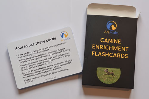 AniMate are proud to release our canine enrichment flashcards. Each set contains 30 cards detailing canine enrichment ideas. These ideas don’t require expensive equipment or loads of time, so they’re ideal for fitting around your usual schedule.